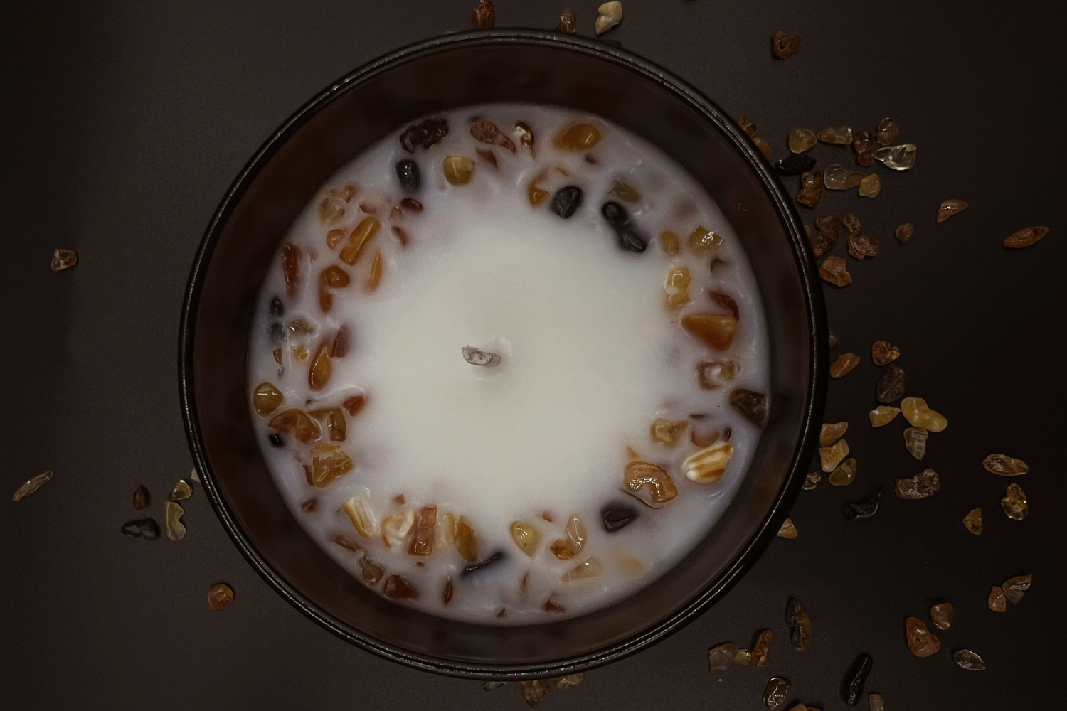 Natural soy candles with real Baltic amber, handmade in Latvia.